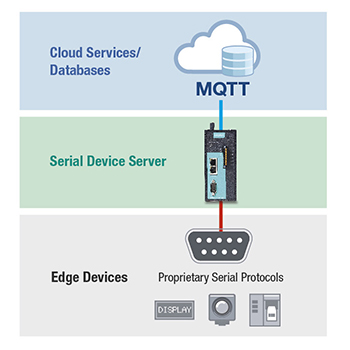 Many industrial devices use proprietary protocols to collect serial data from displays, barcode scanners, and printers. In order for IT systems to use this data, you need a serial device server that can convert proprietary serial data and transmit the information over the MQTT protocol.