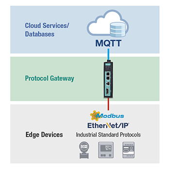 Modbus and EtherNet/IP are the protocols most frequently used for devices such as power meters, flow meters, RTUs, VFDs, and PLCs. To enable these standard OT protocols to communicate with IT systems, you will need a protocol gateway that can convert OT protocols to MQTT.