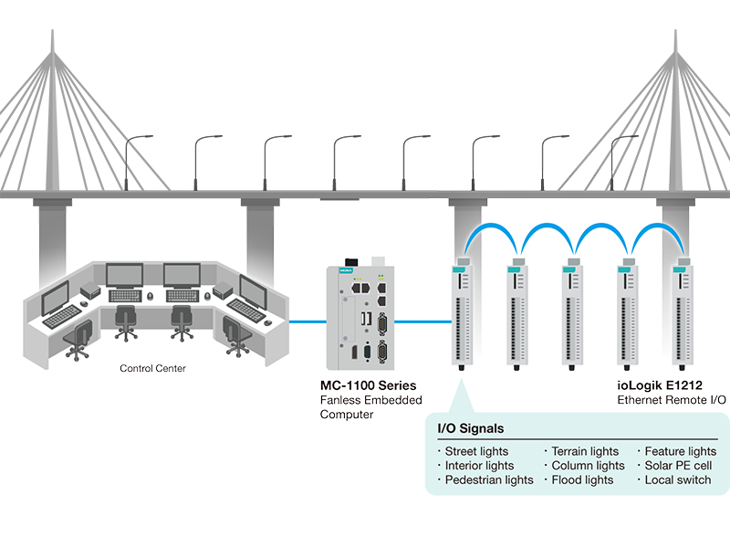 Long-distance bridge lighting systems require energy-efficient, cost-effective, and scalable control mechanisms. Traditional star networks are insufficient for large-scale infrastructure, necessitating a robust Ethernet I/O solution for long-distance connectivity.