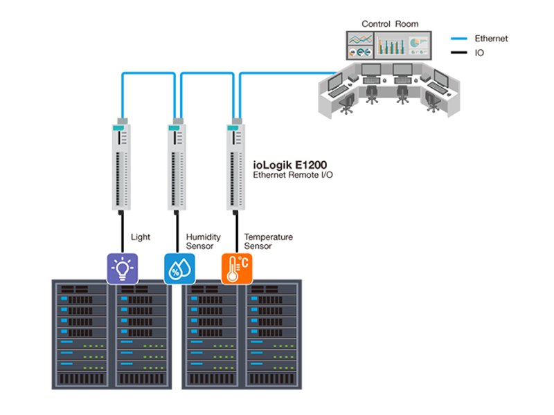 Large-scale data centers demand highly scalable monitoring systems to maintain operational stability. High-density installations are possible with distributed I/O deployed via Ethernet daisy-chain, avoiding complex rewiring and infrastructure upgrades.