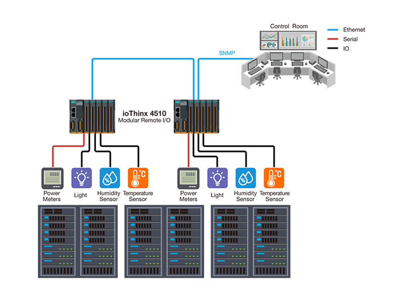 Whether monitoring temperature, integrating power meters, or upgrading legacy systems, Moxa remote I/Os offer flexible, space-saving solutions that connect smoothly to IT systems via Modbus or SNMP.